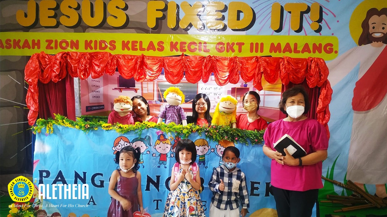 dan pertunjukkan Panggung Boneka Ibadah Paskah Kelas Kecil Zion Kids dengan