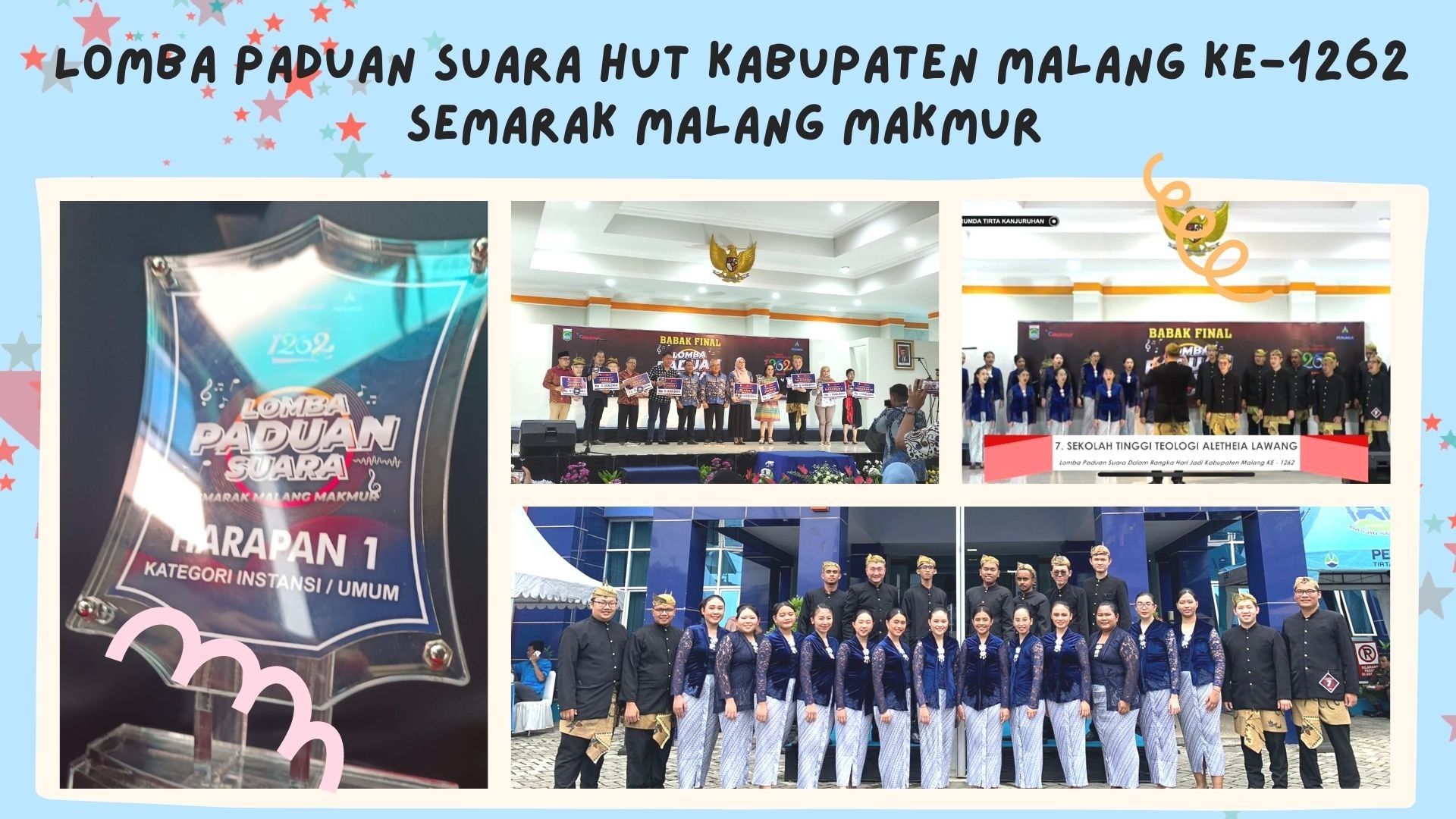 STT Aletheia sebagai salah satu warga masyarakat kabupaten Malang ikut serta dalam lomba tersebut. Dan Puji Tuhan, STT Aletheia berhasil menjadi salah satu dari 12 tim yang lolos dalam final lomba dari total 65 peserta lomba. Lagu pilihan yang dibawakan oleh Tim Paduan Suara STT Aletheia yang dipimpin oleh Bpk. Ev. Yunus Sutandio, M.C.M. adalah sebuah lagu suku Jawa yang berjudul "Tak Lelo Lelo Lelo Ledhung". Final lomba paduan suara diadakan di hari Sabtu, 19 November 2022 yang disiarkan secara live streaming di SINI
