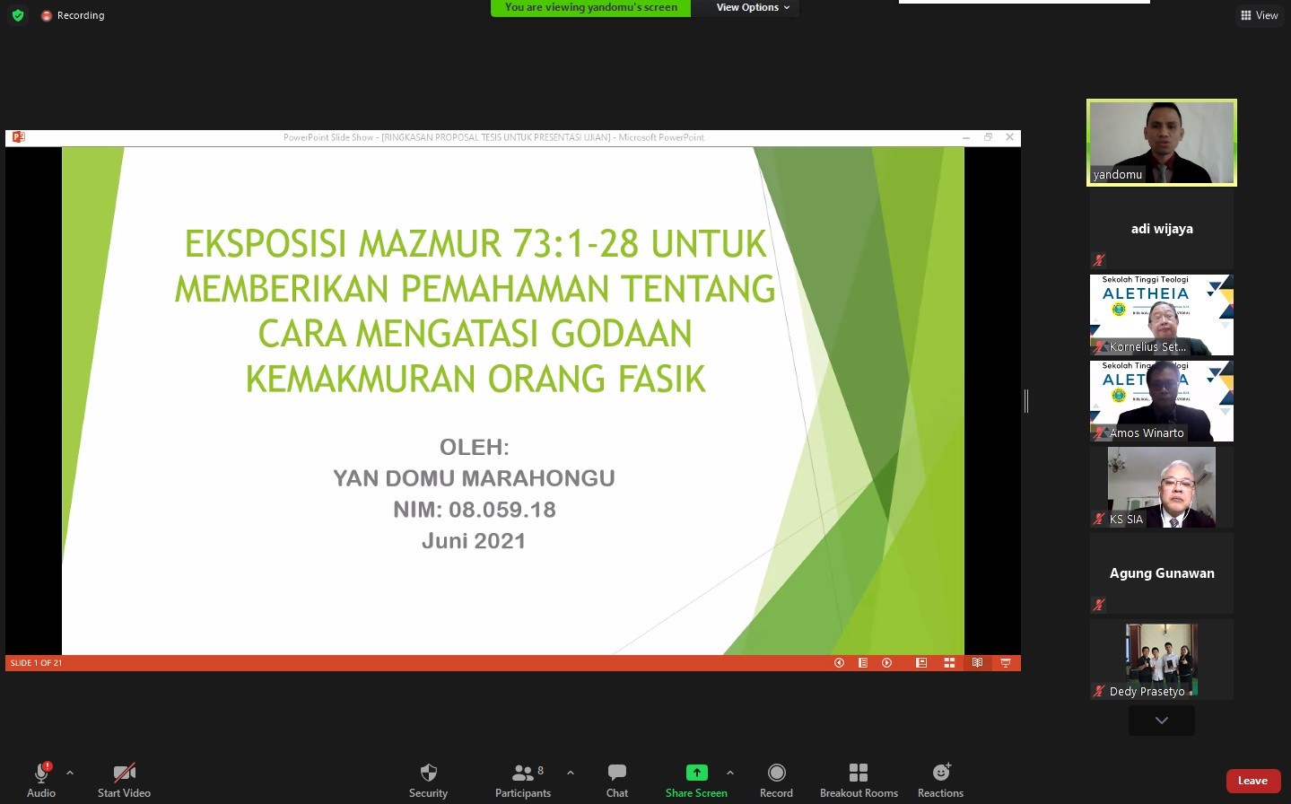 Telaumbanua (06.060.18) secara daring dengan mempergunakan aplikasi Zoom