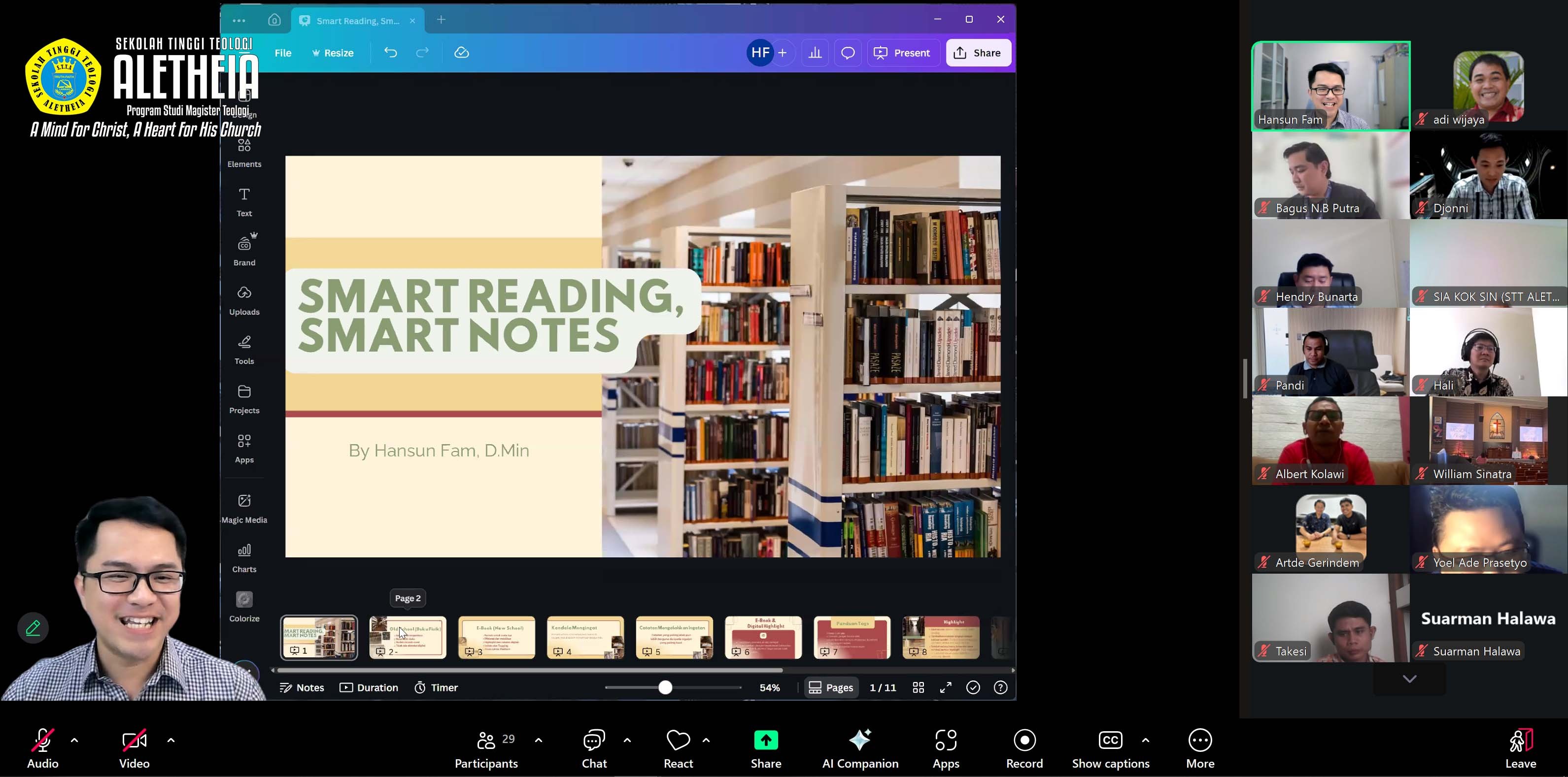 Pasca Sarjana Magister Teologi STT Aletheia mengadakan webinar workshop online